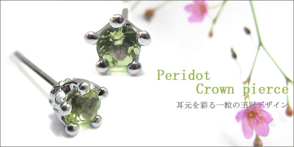 プラチナ・ペリドット・シンプル・王冠・メンズ・一粒・ピアス