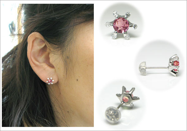 ![]() 10月誕生石ピンクトルマリンを二粒使用した18金製の、 雪の結晶モチーフのダイヤモンド付きメンズピアスです。 ご自分へのご褒美や記念日、誕生日プレゼントなどの贈り物にもお勧めです。