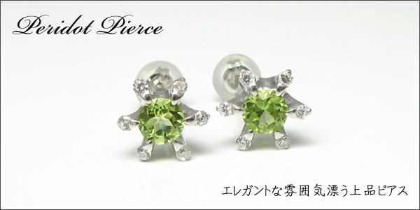 ペリドット・ピアス・雪の結晶・プラチナ