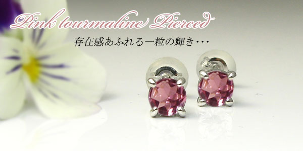 10月誕生石ピンクトルマリンを一粒使用したシンプルな10金製ピアスです。