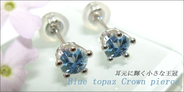 プラチナ・ピアス・ブルートパーズ・王冠モチーフ・pt900・メンズピアス