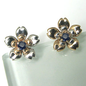 9月誕生石サファイヤを使用した10金製、3パーツ・フラワーモチーフピアスです。