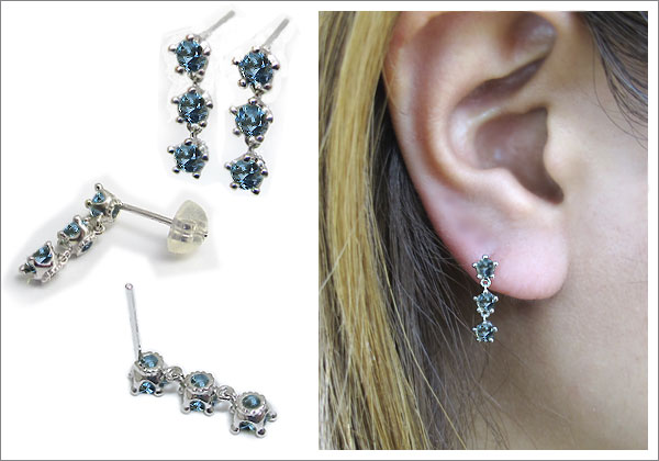 3月誕生石サンタマリアアクアマリンを使用したゆらゆら揺れる18金製の王冠トリロジーピアスです。