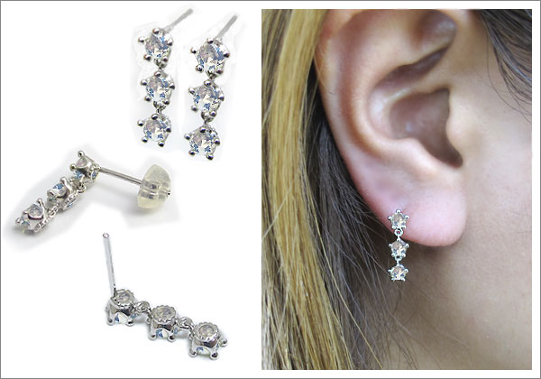 6月誕生石ロイヤルブルームーンストーンを使用したゆらゆら揺れる王冠トリロジーデザインの10金製ピアスです。
