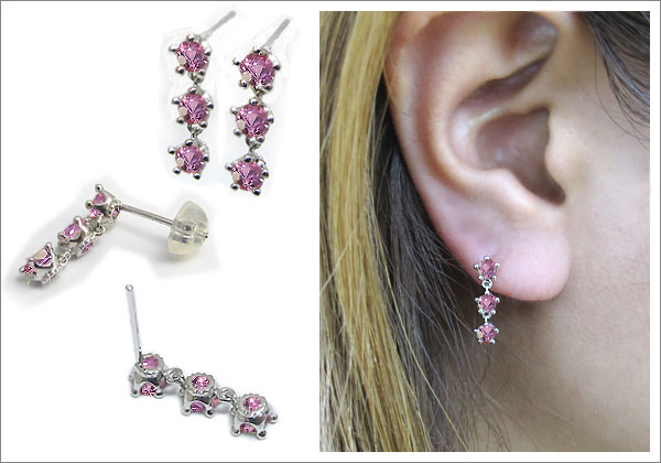 9月誕生石ピンクサファイアを使用したゆらゆら揺れる王冠トリロジーデザインの10金製ピアスです。