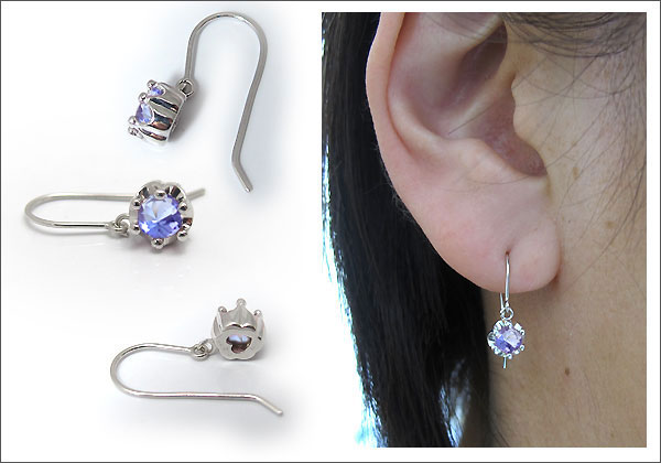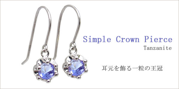 12月誕生石タンザナイトを一粒使用した王冠デザインの18金製フックピアスです。