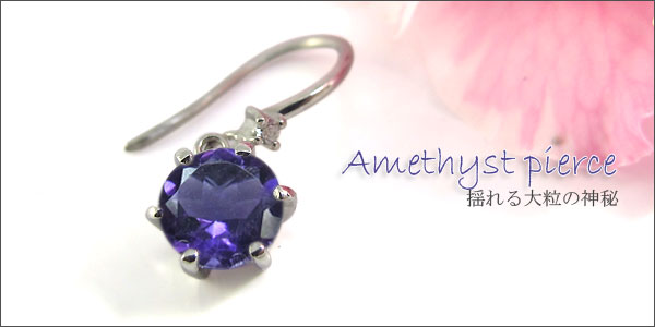 アメジスト・ピアス・一粒・プラチナ・シンプル・フックピアス