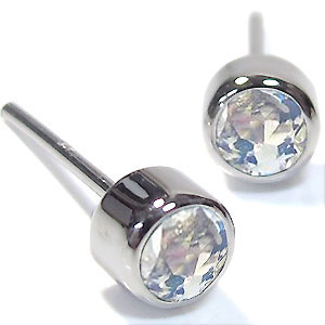 6月誕生石ロイヤルブルームーンストーンを一粒使用したシンプルデザインの18金製メンズピアスです。