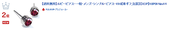 ルビーピアス・一粒・メンズ・シンプル・ピアス・K10