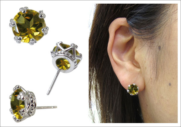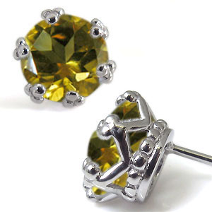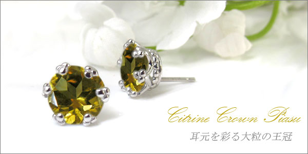 11月誕生石シトリンを一粒使用した王冠モチーフの10金製ピアスです。