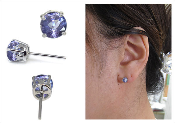 タンザナイト・プラチナ・シンプル・一粒・ピアス