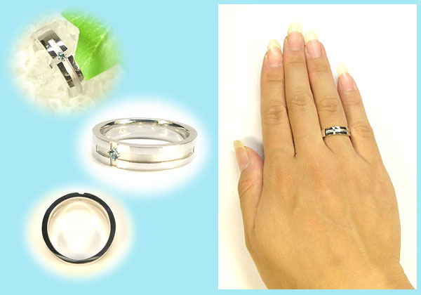 プラチナ・クロスリング・パライバトルマリン0.02ct結婚指輪Pt900【1105-m】