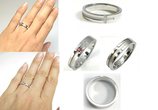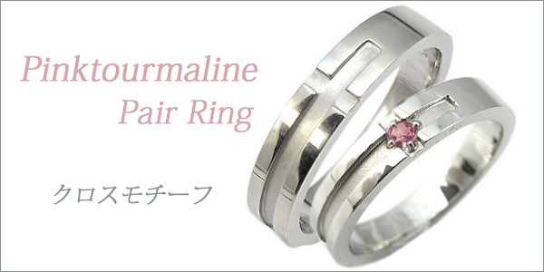 10月誕生石ピンクトルマリンを一粒使用した10金製のクロスデザインのペアリングです。