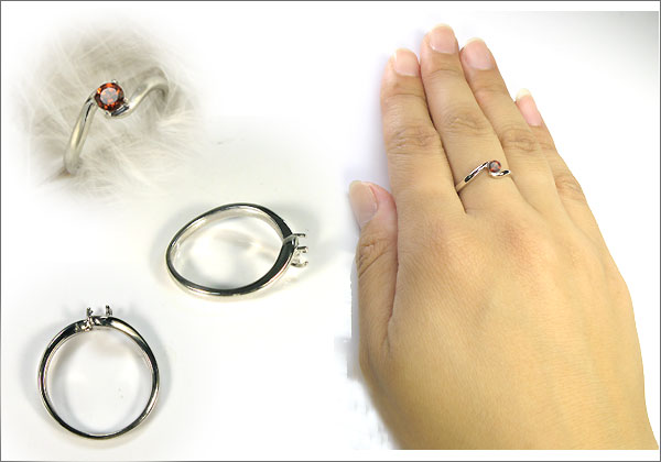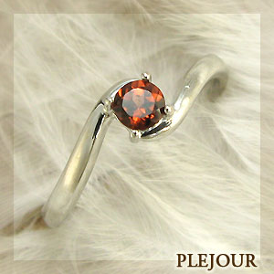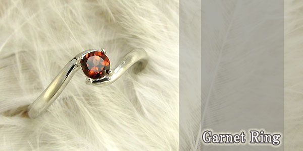 1月誕生石ガーネットを一粒使ったシンプルデザインの18金リングです