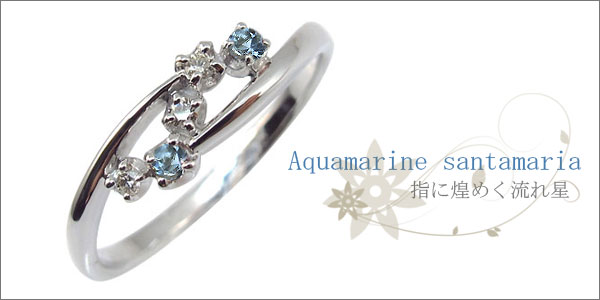 3月誕生石アクアマリンとダイヤモンドを使用した、流れ星デザインの18金製リング(指輪)です。