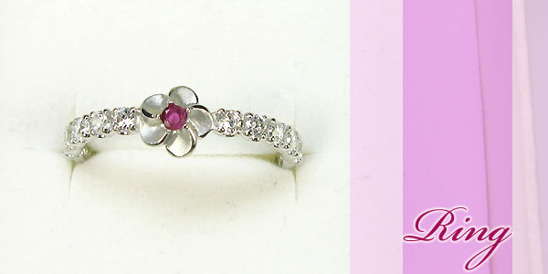 ![]() 7月誕生石ルビーを一石に、キュービックジルコニアを使用した 10金製のハーフエタニティリングです。 中央にルビーをあしらった可憐な花を配した、女性らしい華やかさのあるデザインに仕上げました。 ご自分へのご褒美や記念日、誕生日プレゼントなどの贈り物にもお勧めです。