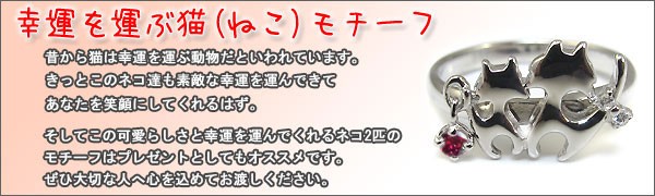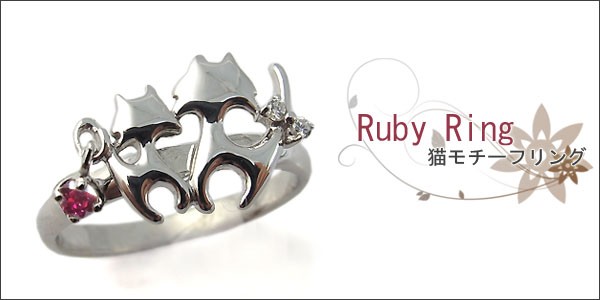 7月誕生石ルビーを一粒使用したネコ(猫)デザインの10金製リングです。