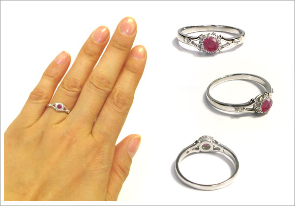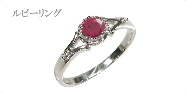 ルビー・リング・プラチナ・シンプル・エンゲージリング・婚約指輪