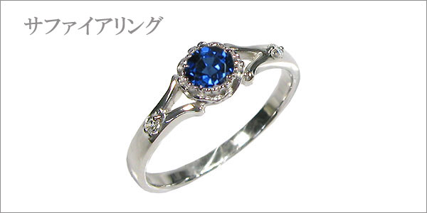 9月誕生石サファイアを一粒使用したシンプルデザインの18金製ダイヤモンド付きリングです。