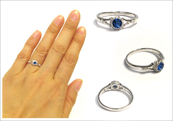 サファイア・リング・18金・シンプル・エンゲージリング・婚約指輪