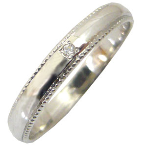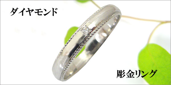 ダイヤモンド 結婚指輪 シンプル 18金 彫金 甲丸リング マリッジリング