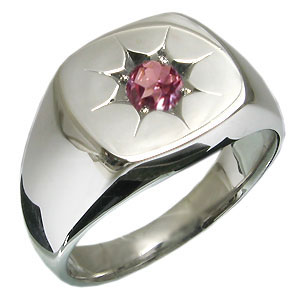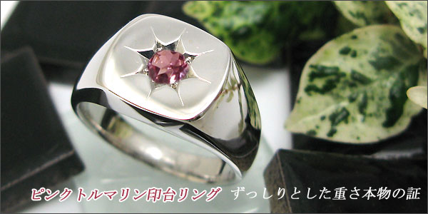 メンズリング・印台リング・ピンクトルマリン・18金・地金・リング