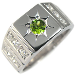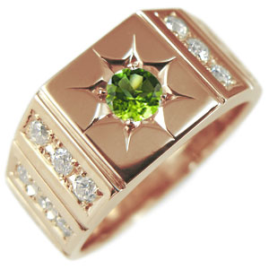 ![]() 8月誕生石ペリドット、贅沢にダイヤモンドと地金を使用した、 10金製印台ペリドットメンズリング(指輪)です。 誕生石1石と18石の天然ダイヤモンドが貴方の手元をゴージャスに輝かせます。