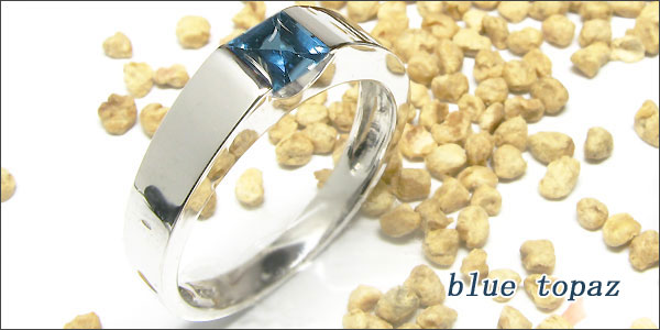 スクエア(四角)ブルートパーズを使用した18金製のリングです。