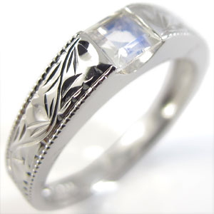 6月誕生石ロイヤルブルームーンストーンを一粒使用した10金製のハワイアンリング(指輪)です。