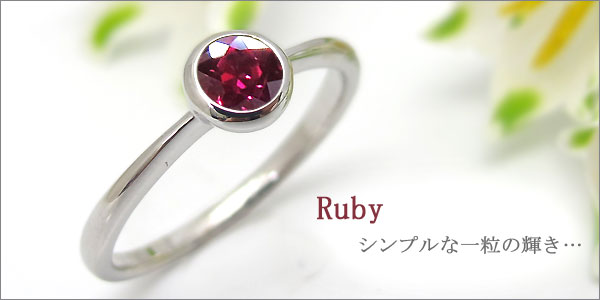 7月誕生石ルビーを一粒使用したシンプルデザインのプラチナ金製リングです。