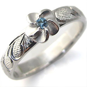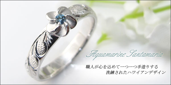 ハワイアンジュエリー プラチナリング サンタマリア アクアマリン リング ピンキーリング