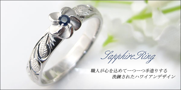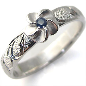 9月誕生石サファイヤを一粒使用し、手彫り彫金を施したプラチナ(pt900)製ハワイアンジュエリーリングです。
