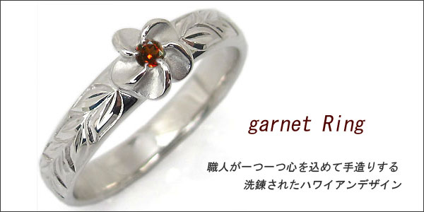 ガーネットリング ピンキーリング ハワイアンジュエリー プラチナ リング 指輪