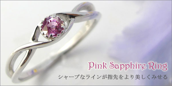 9月誕生石ピンクサファイアを一粒使用したシンプルデザインのプラチナ製リングです。