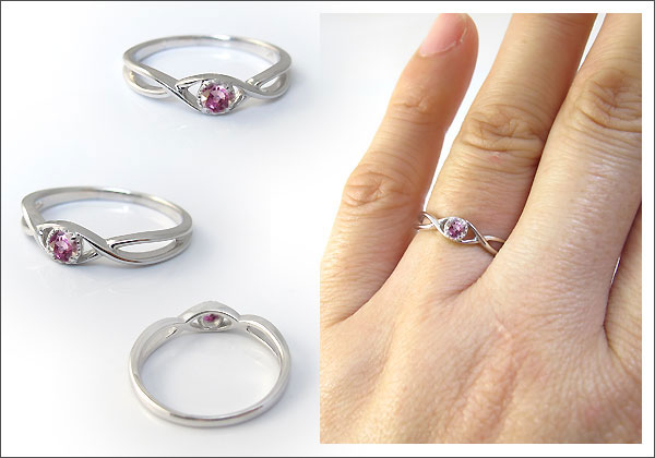 ピンクサファイア・リング・シンプル・一粒・指輪・プラチナ