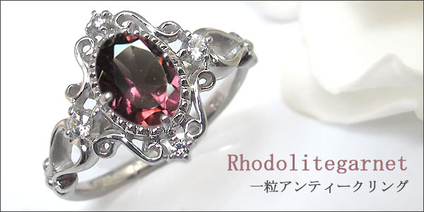 1月誕生石ロードライトガーネットを一粒使用したアンティークデザインの10金製リングです。