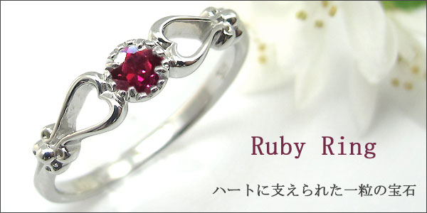 7月誕生石ルビーを一粒使用したハートデザインのプラチナ製リングです。