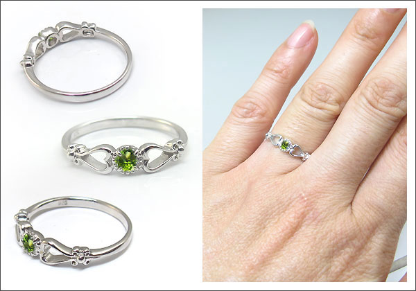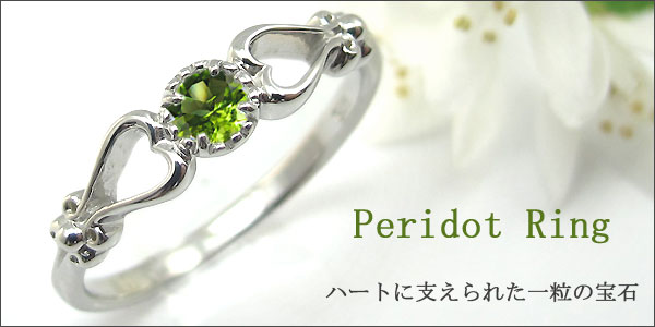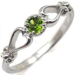 8月誕生石ペリドットを一粒使用したハートデザインの10金製リングです。