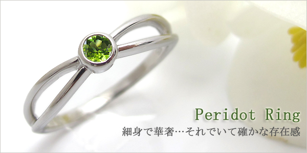 8月誕生石ペリドットを一粒使用したシンプルデザインのプラチナ製リングです。