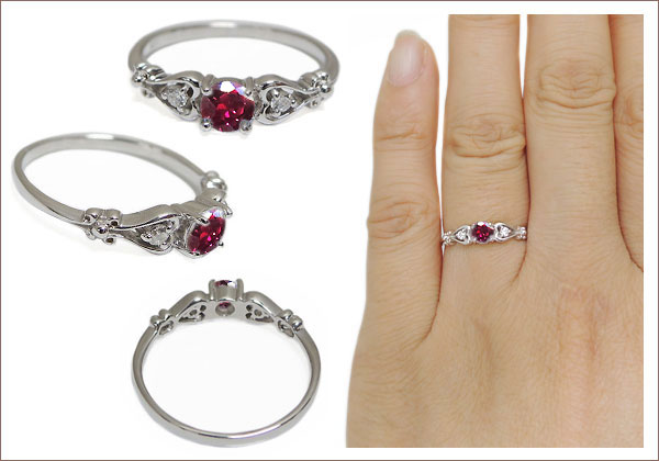| ■石名 | 主石:ルビー(約 4.0mm/天然石使用) 脇石:ダイアモンド(合計2石で約 0.04ct/天然石使用) |