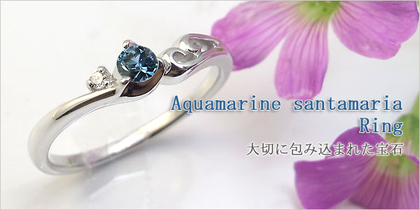 3月誕生石アクアマリンサンタマリアを一粒使用したシンプルデザインの18金製リングです。