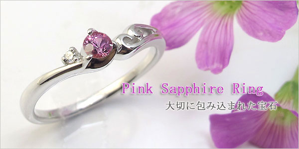 9月誕生石ピンクサファイアを一粒使用したシンプルデザインのプラチナ製リングです。