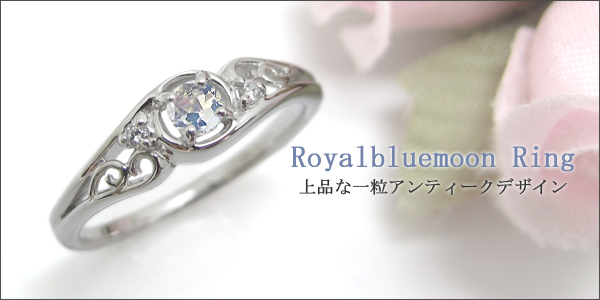 6月誕生石ロイヤルブルームーンストーンを一粒使用したアンティークデザインのプラチナ製リングです。