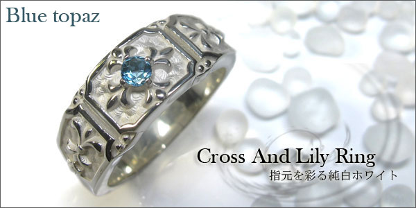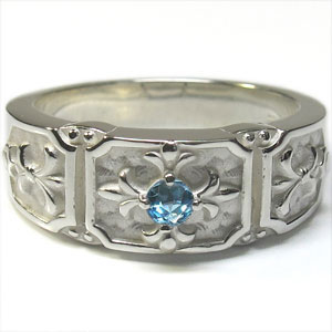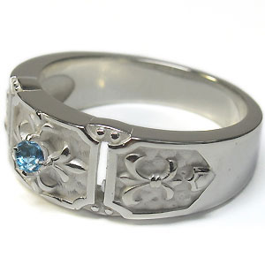 11月誕生石ブルートパーズを一粒使用した、クロス&百合の紋章デザインのシルバー製メンズリング(指輪)です。