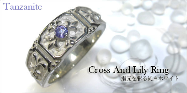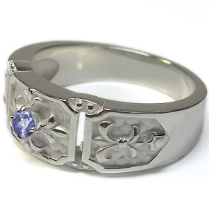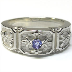 12月誕生石タンザナイトを一粒使用した、クロス&百合の紋章デザインのシルバー製メンズリング(指輪)です。