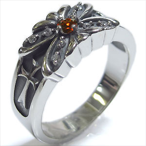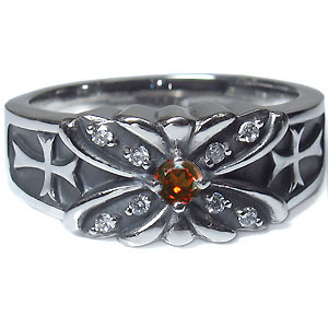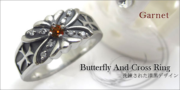 ガーネットリング・クロス・シルバー・メンズ・リング・蝶・指輪