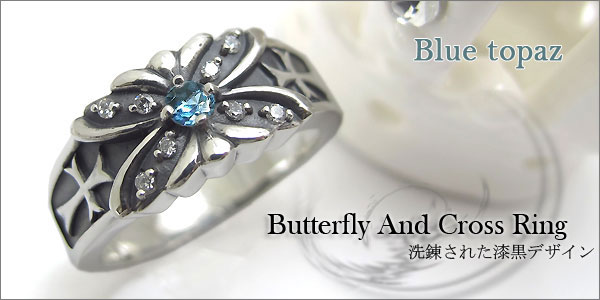 リング・ブルートパーズ・クロス・リング・シルバー・メンズ・蝶・指輪