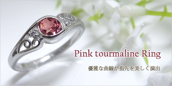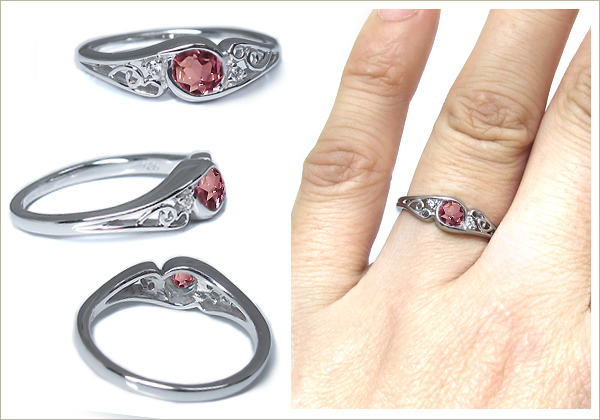 10月誕生石ピンクトルマリンを一粒使用したアンティークデザインの10金製リングです。