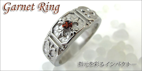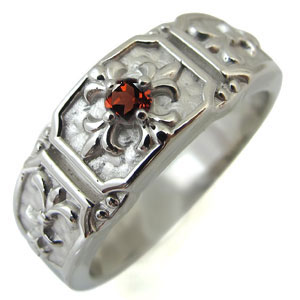 ガーネット・リング・18金・メンズ・クロス・百合の紋章・指輪