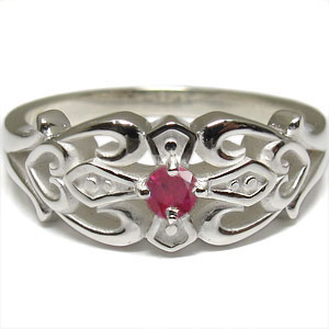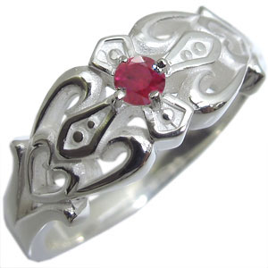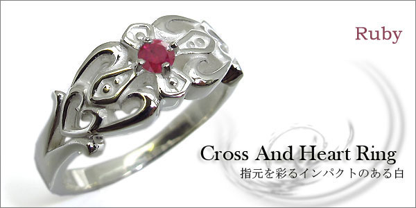 クロス・シルバー・メンズ・リング・ハート・ルビー・リング・指輪